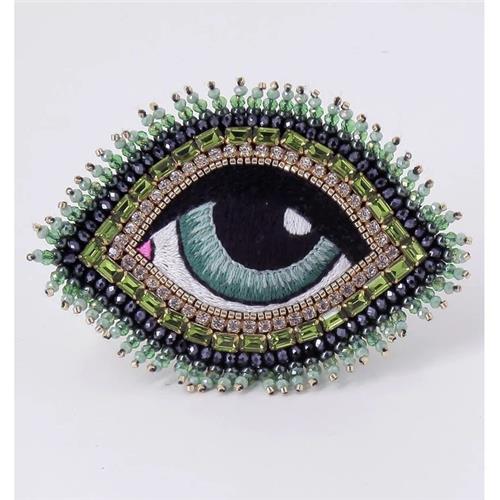 The Céleste Eye Brooch has become the classic of the Céleste Mogador brand. The eye is delicately hand embroidered with coloured silk threads.