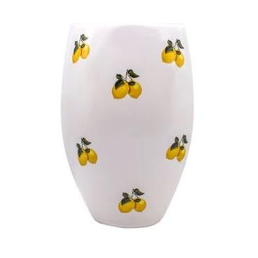 Luxury Oval shaped white vase adorned with the Lemon print, this vase will make the perfect vessel for arranging your favourite florals.