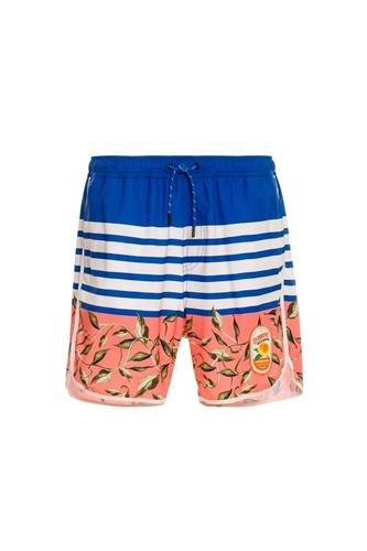 Comfortable men's trunks in a beachy artisan-designed print with contrasting print waistband and back patch pocket. These men's trunks are completed with side pockets, perfect for a day out in the sun.